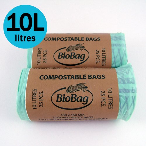 10 Litre x 50 bags Biobag Compostable Kitchen Caddy Liner - Food Waste Bin Liners - EN 13432 - Biobags 10L Bags with Composting Guide