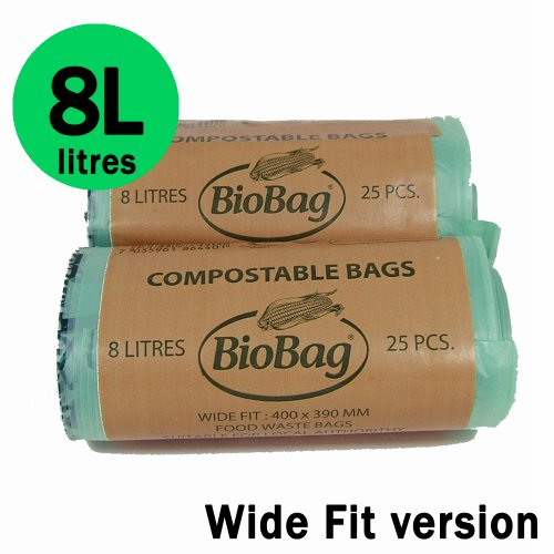 8 litre (Wide fit version) Compostable BioBag Kitchen Caddy Liners (Medium size)